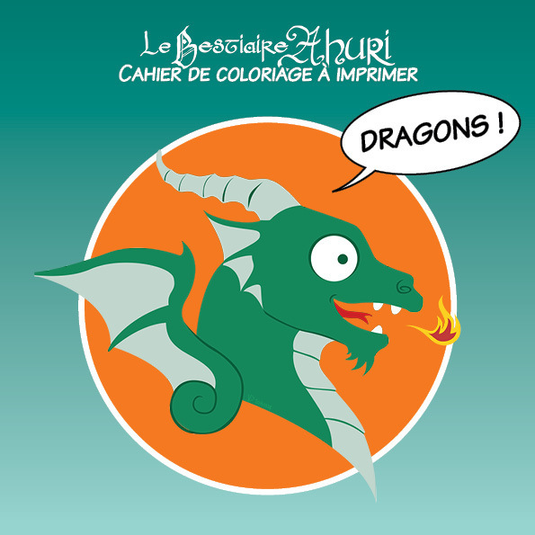 Ce PDF contient 5 pages de coloriage représentant des dragons de tous horizons... plus deux squatteurs parce que je n'ai pas dessiné assez de dragons visiblement.
